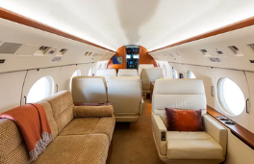 The Gulfstream V is categorized as an ultra-long-range business aircraft. It can seat up to 18 passengers and features three or four living areas. Cabin features a full-sized gallery, a sink, power outlets, fold-out tables, TVs and entertainment systems and lots of comfort for passengers.